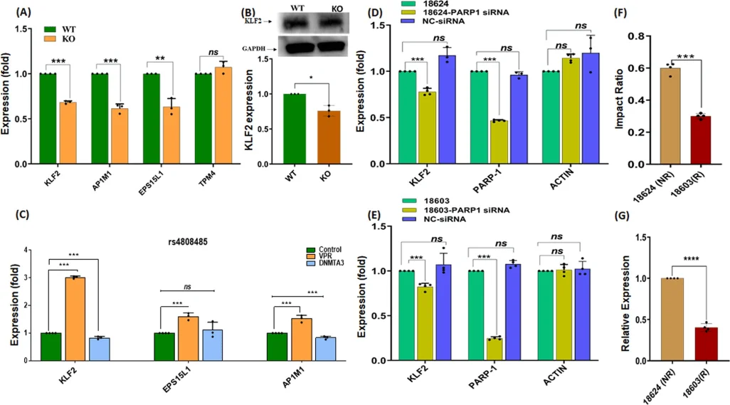 Fig. 5. The impac of CRISPR-based enhancer deletion and PARP1 knockout on target gene expression