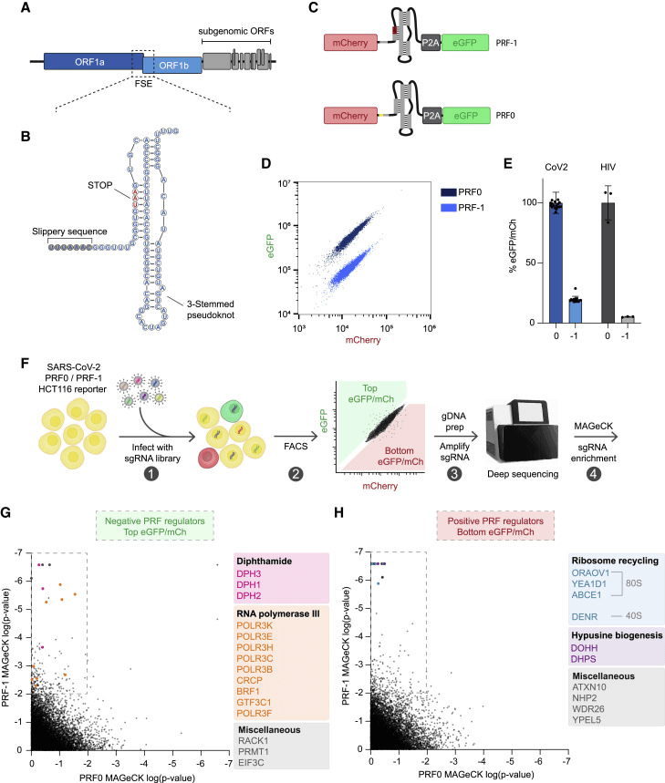 Figure 2. Identification of regulatory factors for SARS-CoV-2 PRF through whole-genome CRISPR-Cas9 knockout screening.