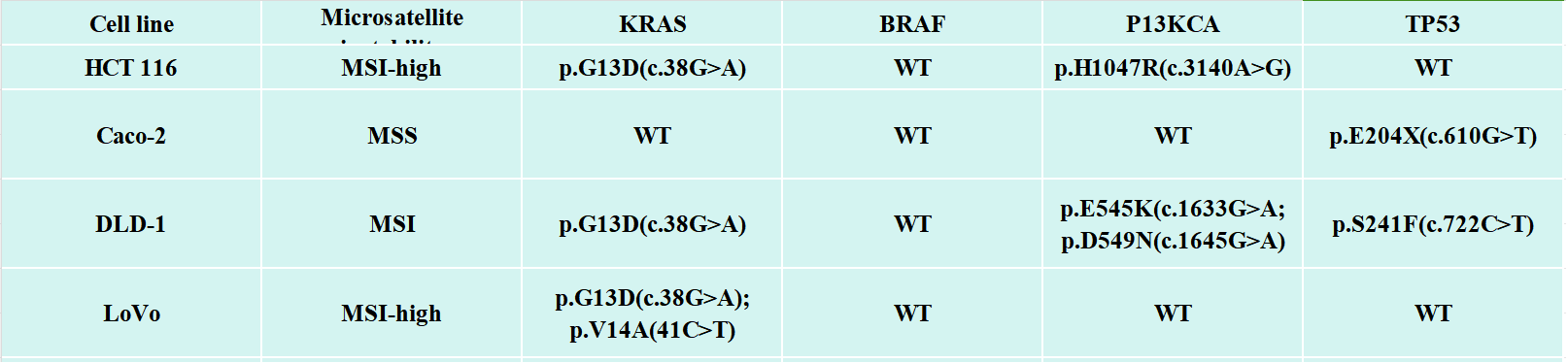 Colorectal cancer (CRC) is one of the most common malignant tumors worldwide. Colonoscopy screening helps with the early detection of CRC, but more than 25% of patients have metastases at diagnosis. Cancer metastasis is the leading cause of death among CRC patients, with a 5-year overall survival rate of less than 20%. CRC is a heterogeneous group of tumors that can be subdivided based on molecular characteristics to implement different treatment strategies. For example, Microsatellite Instability (MSI) and Microsatellite Stability (MSS), and the molecular profiling of metastatic CRC (including the analysis of gene mutations such as KRAS, NRAS, BRAF, PIK3CA) are increasingly important for determining prognosis and predictive biomarkers, as well as understanding the biological drivers of tumors. Clinical trials are currently selecting specific tumor features and using new drugs to target these tumors. Cell line models are widely used for drug sensitivity testing and identifying potential therapeutic compounds for patient treatment. This article introduces several common CRC cell lines, summarizes their molecular characteristics[2], and lists their applications in gene editing.