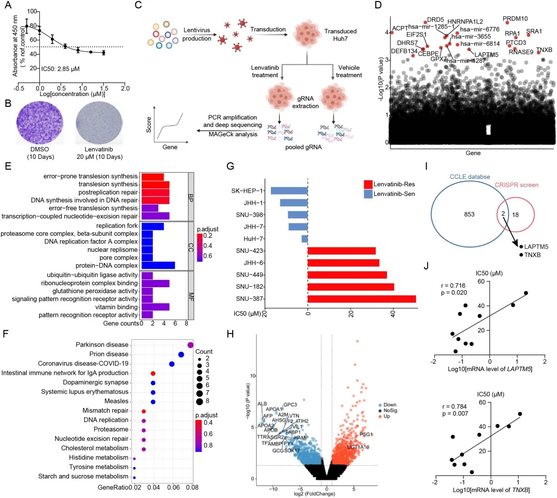 The researchers used CRISPR-Cas9 library screening technology to perform genome-wide gene knockout screening of liver cancer cells to find out which gene deletions would affect the sensitivity of cells to lenvatinib. Integrated genome-wide screening and database analysis identified LAPTM5 and TNXB as potential factors in lenvatinib resistance in HCC.