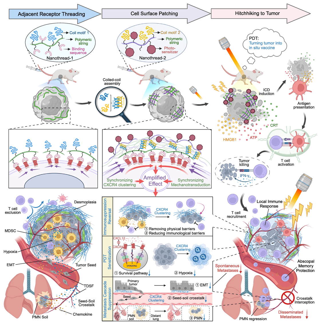 [1] Zhou, M., Liu, C., Li, B., Li, J., Zhang, P., Huang, Y., Li, L. Cell surface patching via CXCR4-targeted nanothreads for cancer metastasis inhibition. Nat Commun. 2024 15:2763. doi: 10.1038/s41467-024-47111-z