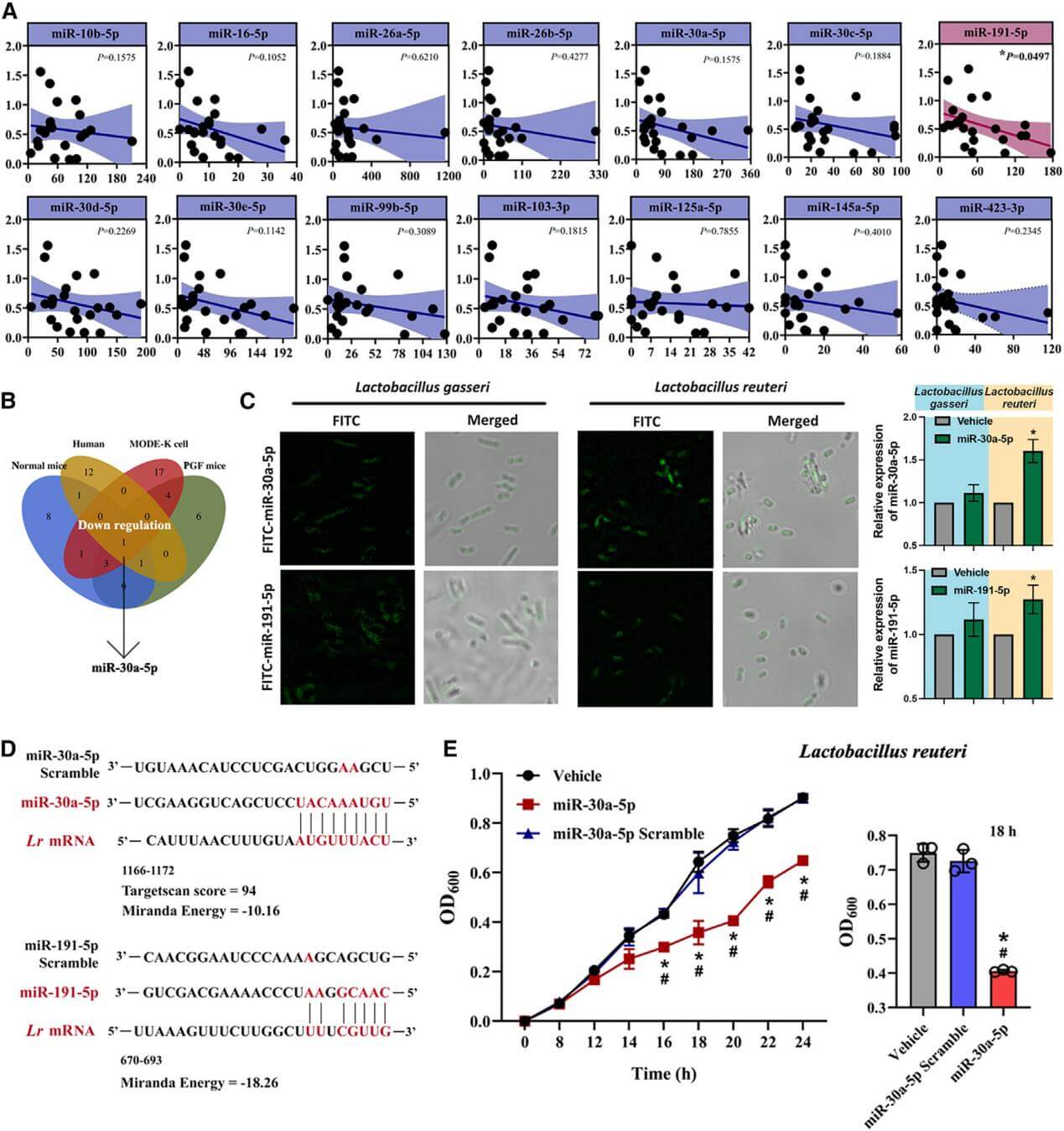 Figure 6. miR-30a-5p restrains the proliferation of Lactobacillus reuteri