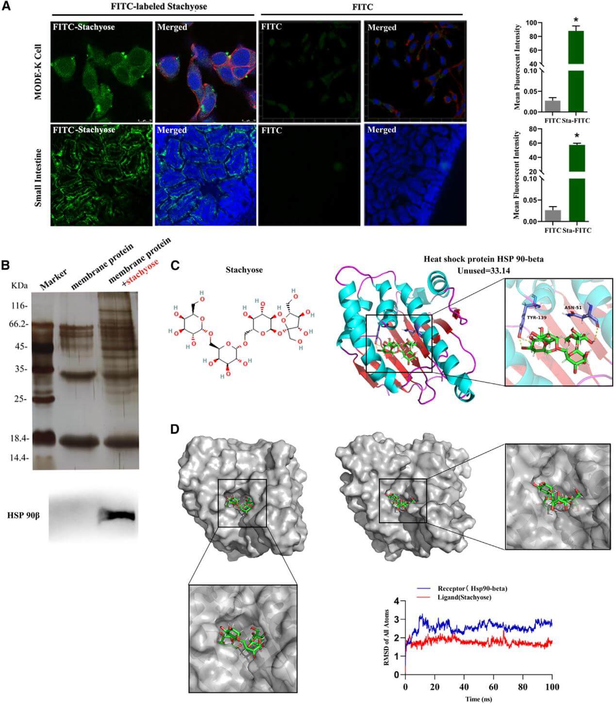 Figure 1.Stachyose directly interacts with HSP90β, which is located at the membrane of mouse small intestinal epithelial cells