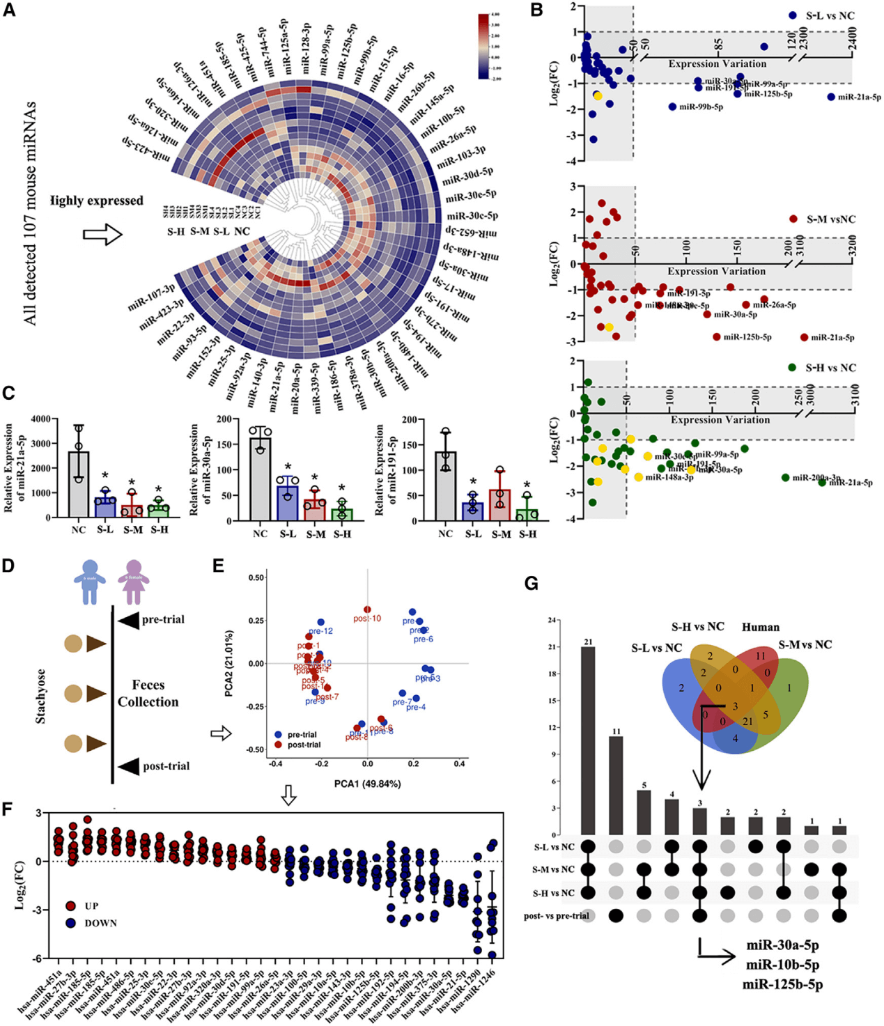 Figure 3. Stachyose reconstitutes fecal miRNA profiles in mice and humans