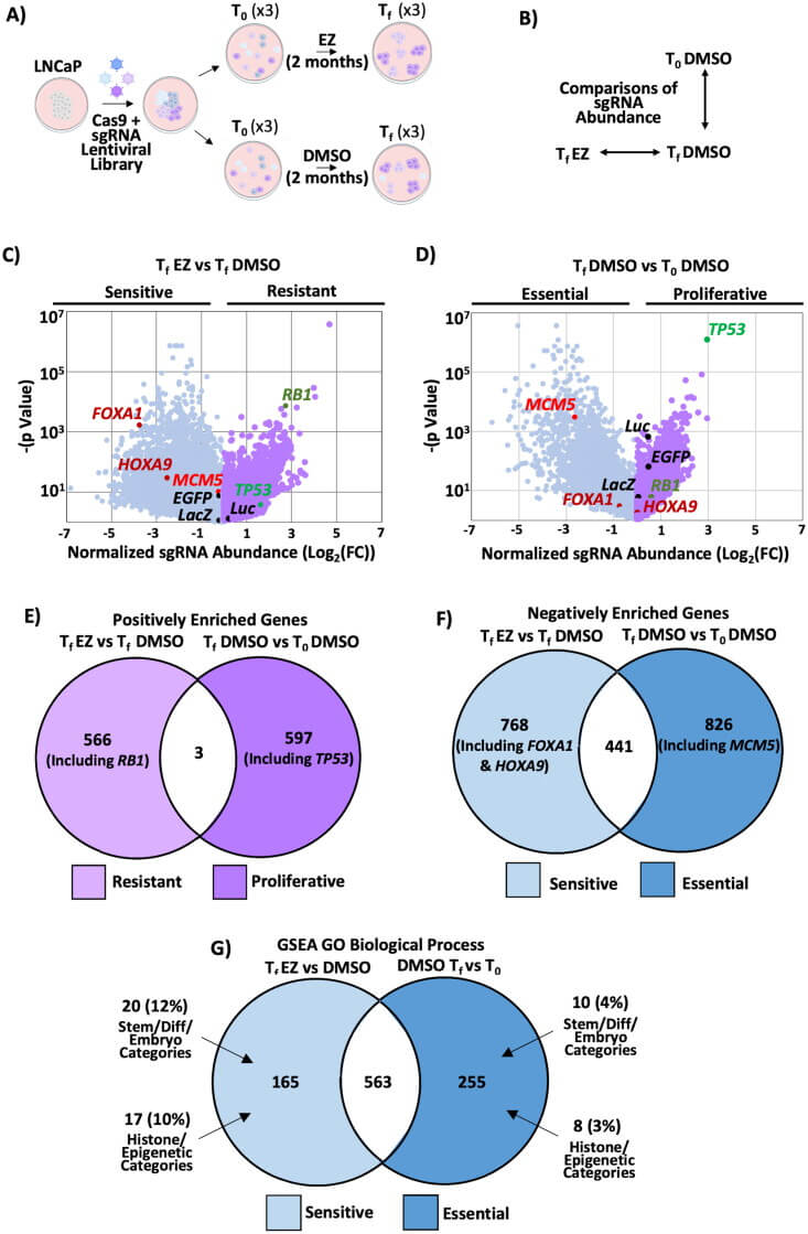 Figure 1: Genome-wide CRISPR knockout screening reveals that stem cell and epigenetic-related genes are crucial for cell viability under enzalutamide treatment