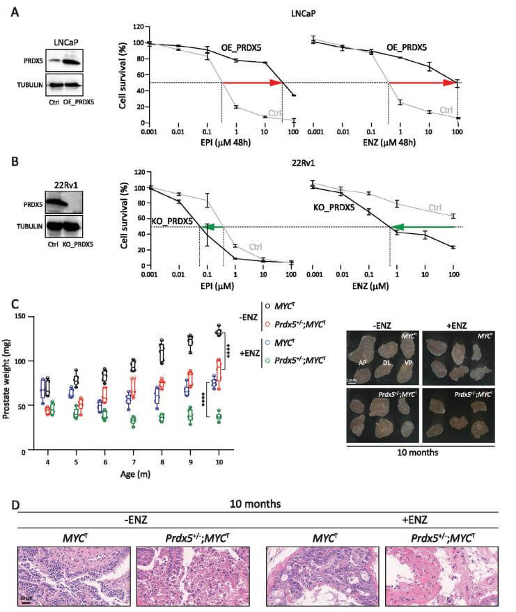Figure 4: The Key Role of PRDX5 in AR Inhibitor Resistance and CRPC Progression
