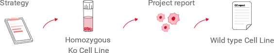 Project strategy + homozygous knockout cell lines + wild-type cells + experimental report.
